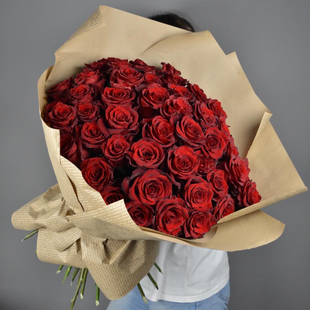 Букет из 51 красных роз premium 60-70 см (Эквадор) в стильной упаковке