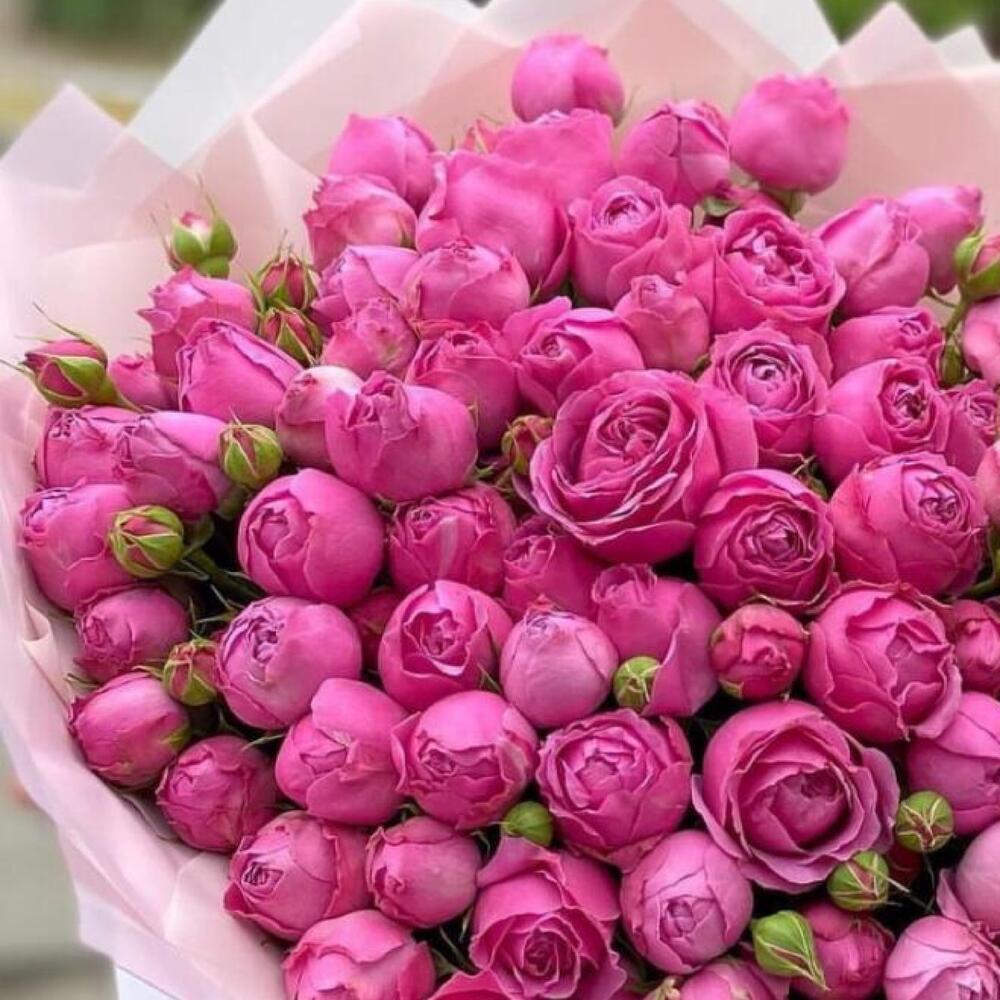 Роза кустовая пионовидная – 51 шт.Упаковка дизайнерская – 2 шт.Лента атласная – 2 шт.Открыточка с вашими пожеланиями – 1 шт.хорошее настроение – 100 шт.инструкция по уходу за цветами – 1 шт.коробка переноска – 1 шт.Кризал – 1 шт.