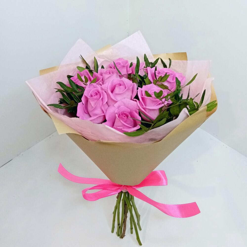 Букет из 9 роз розовых с фисташкой