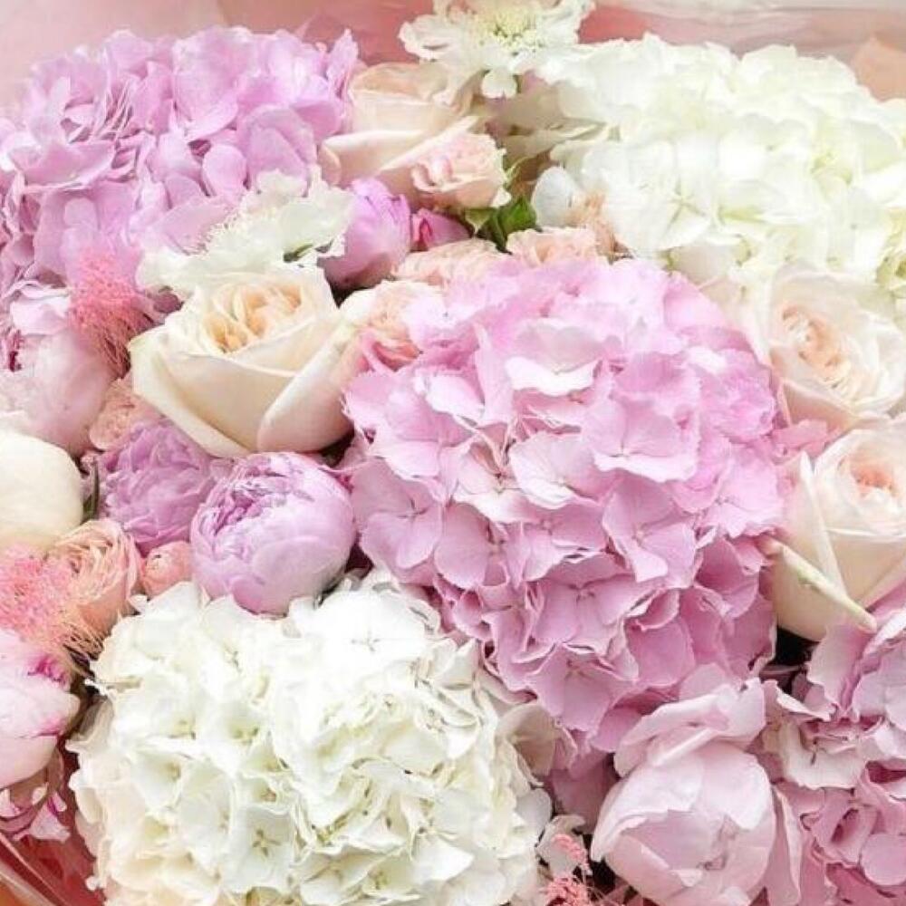 Букет из гортензий, пионов и пионовидных роз «Струны души»