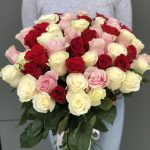 Метки: 15 роз, Белые розы, Красные розы, На свадьбу, от 5000 руб, Роза 50 см, Розовые розы