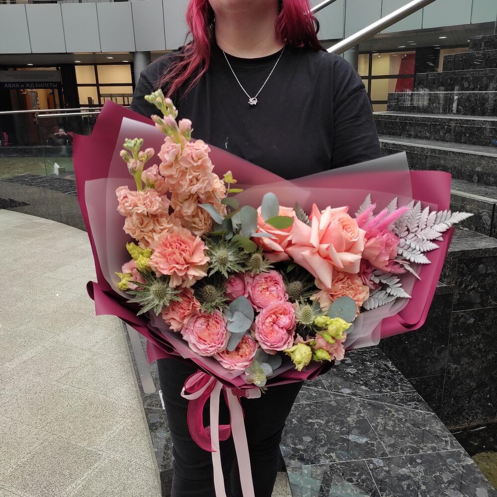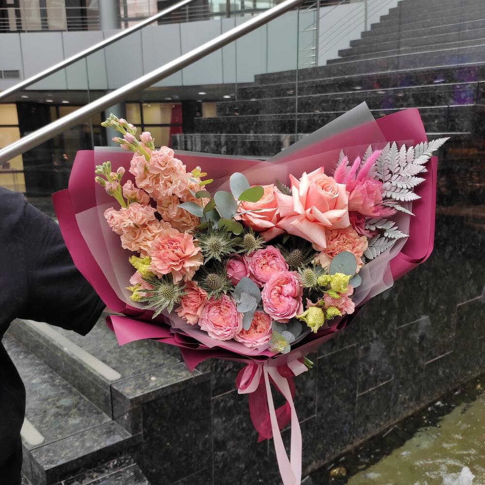Категории: Гвоздики, Пионовидные розы, Розы, Сухоцвет