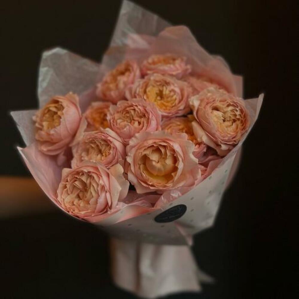 Кустовая пионовидная роза – 3 шт.декоративная упаковка – 1 шт.Атласная лента – 1 шт.