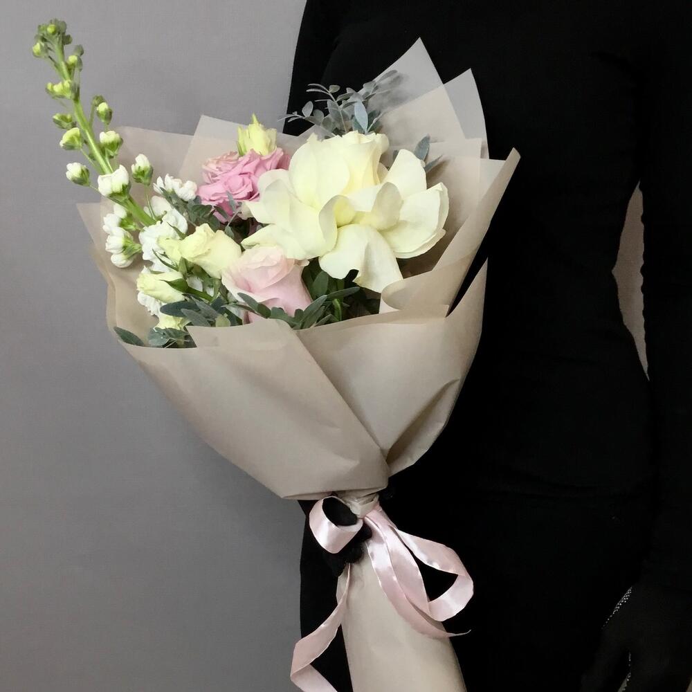 Букет из роз, матиоллы и эустомы «Просто так»