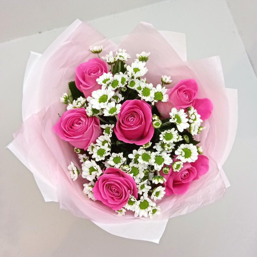 Букет из роз розовых и Сантини
