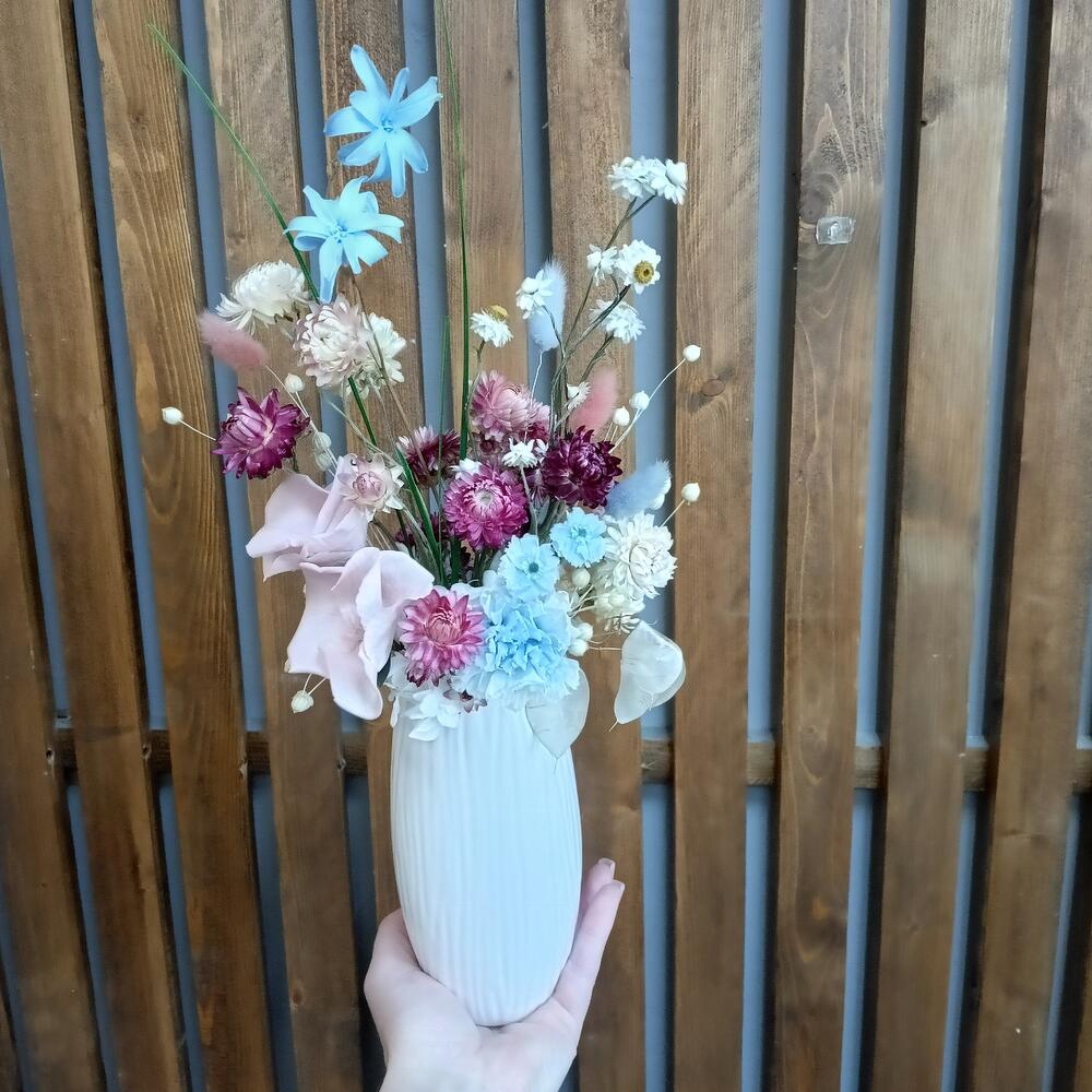 Букет из стабилизированных цветов и сухоцветов в вазе