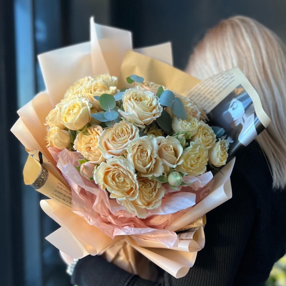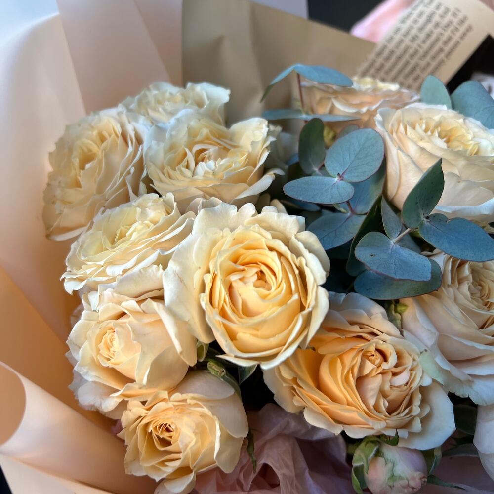 Букет кустовой ароматной розы и эвкалипта