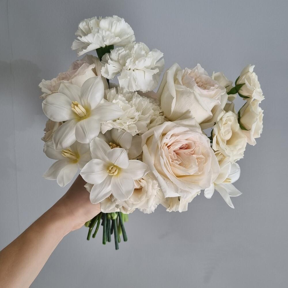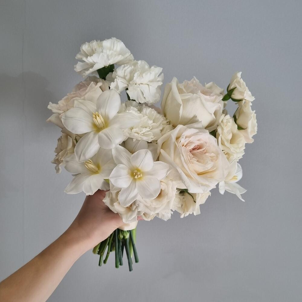Тюльпан – 4 шт.Диантус – 6 шт.Роза кустовая – 3 шт.Пионовидная роза – 4 шт.ваза транспортировочная – 1 шт.сумка переноска – 1 шт.