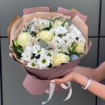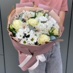 Букет Нежное прикосновение с белыми розами и хризантемами