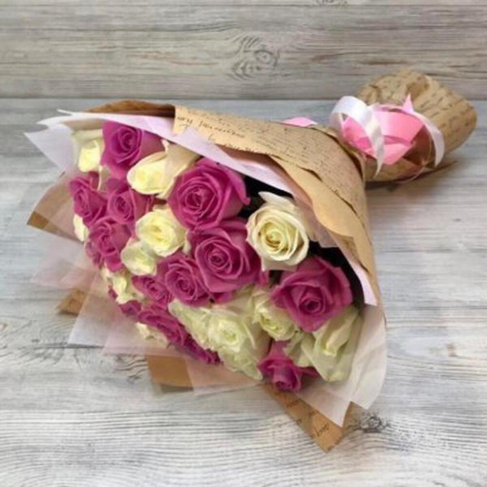 Белые розы в крафте
