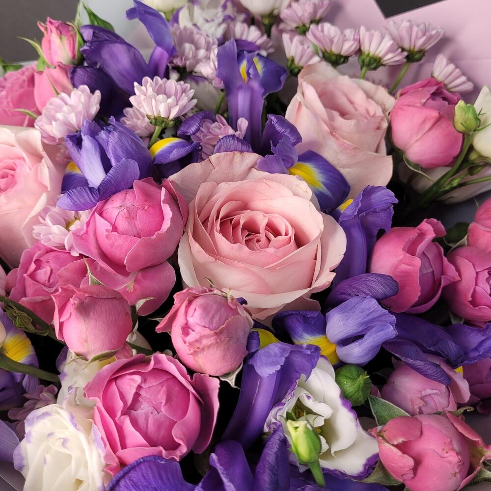 Категорий: Ирисы, Кустовые розы, Лизиантусы, Пионовидные розы, Розы