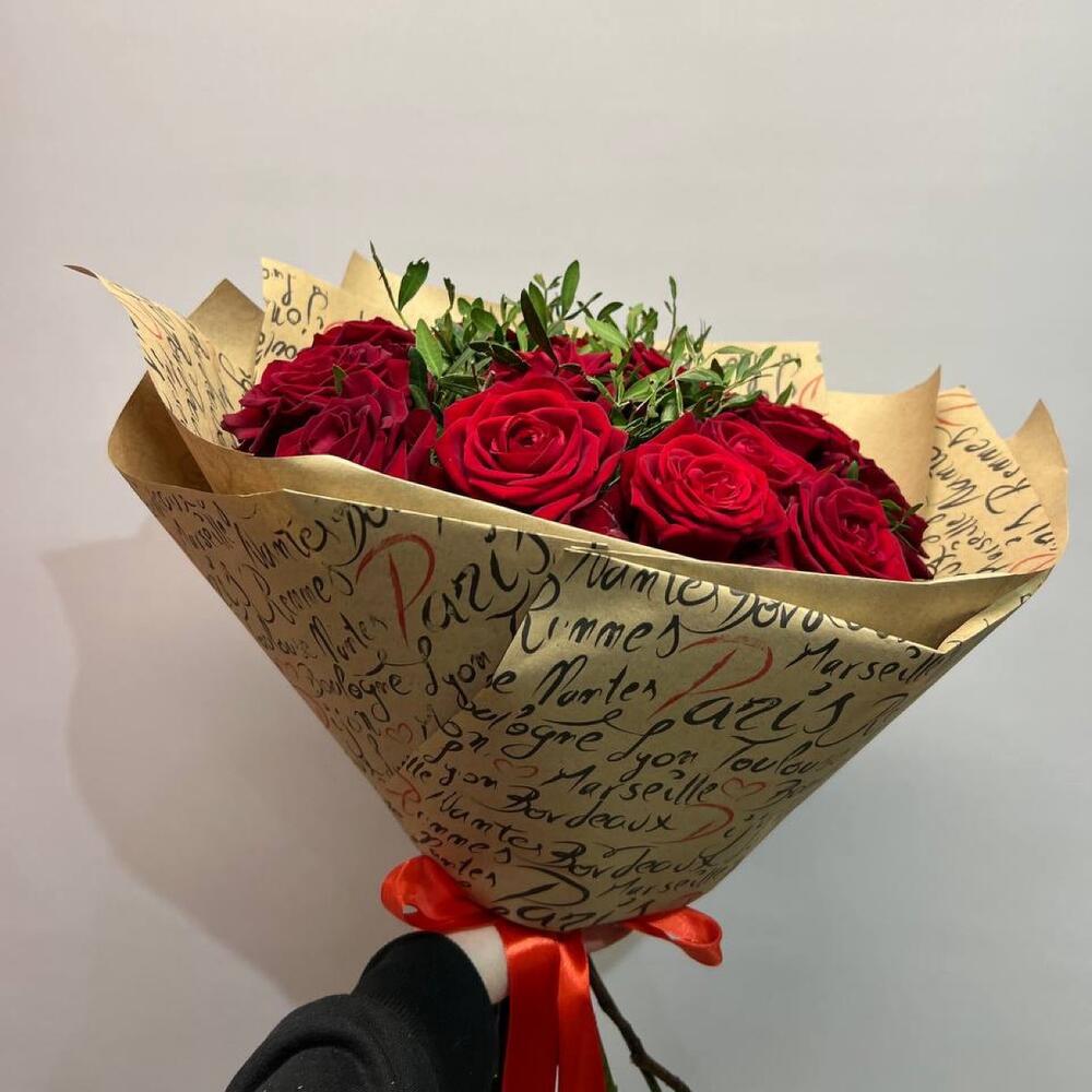 Роза красная – 15 шт.оформление дизайнерское – 1 шт.
