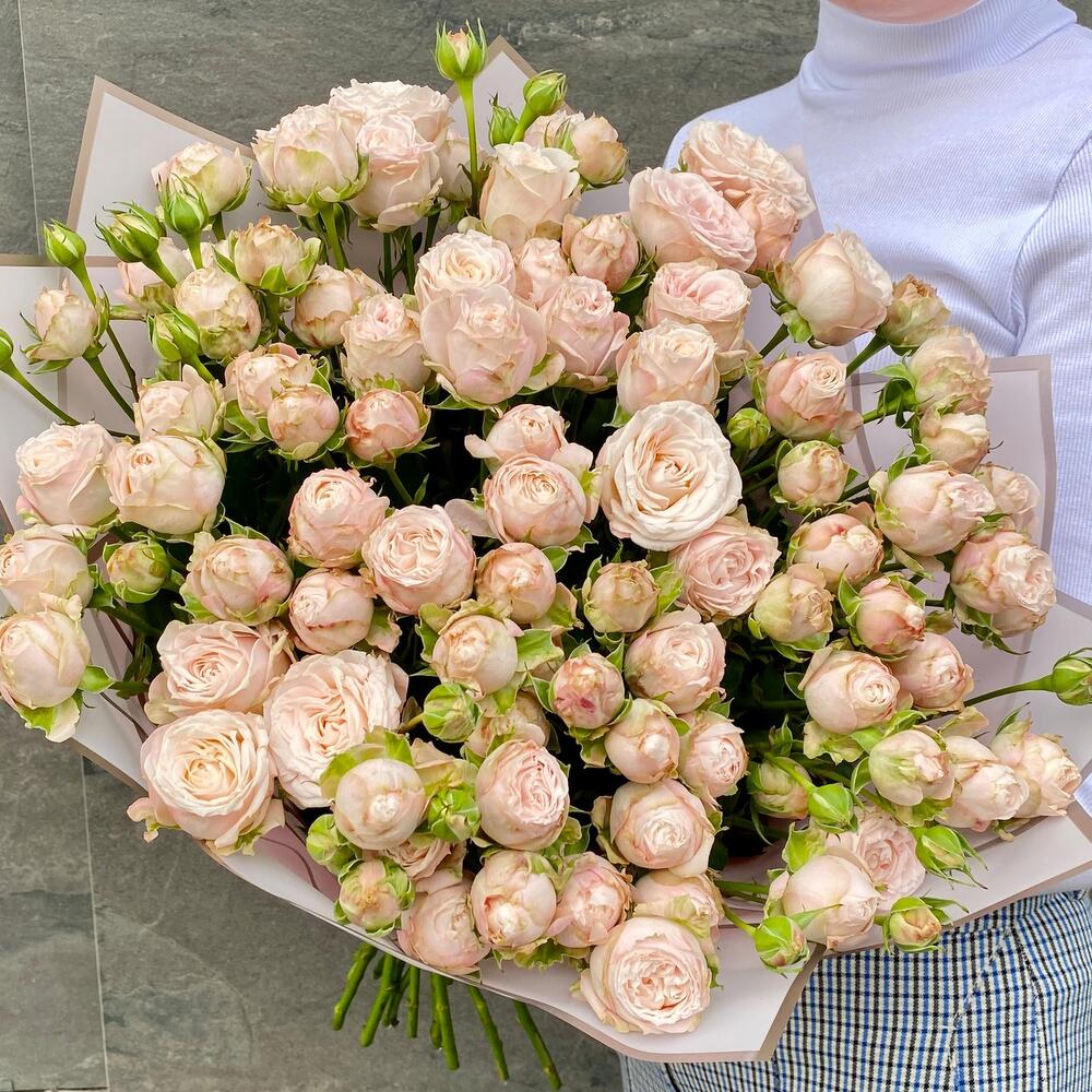 Букет с 25 пионовидными кустовыми розами премиум 80 см