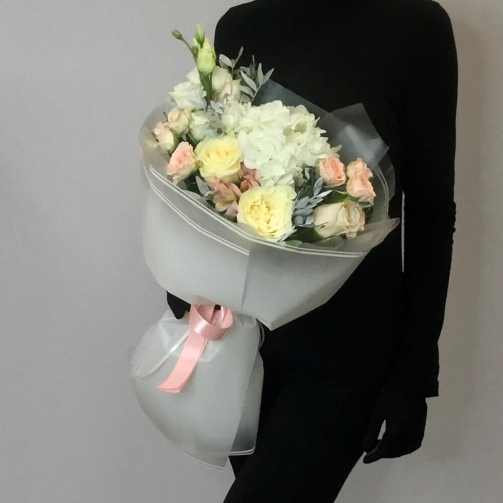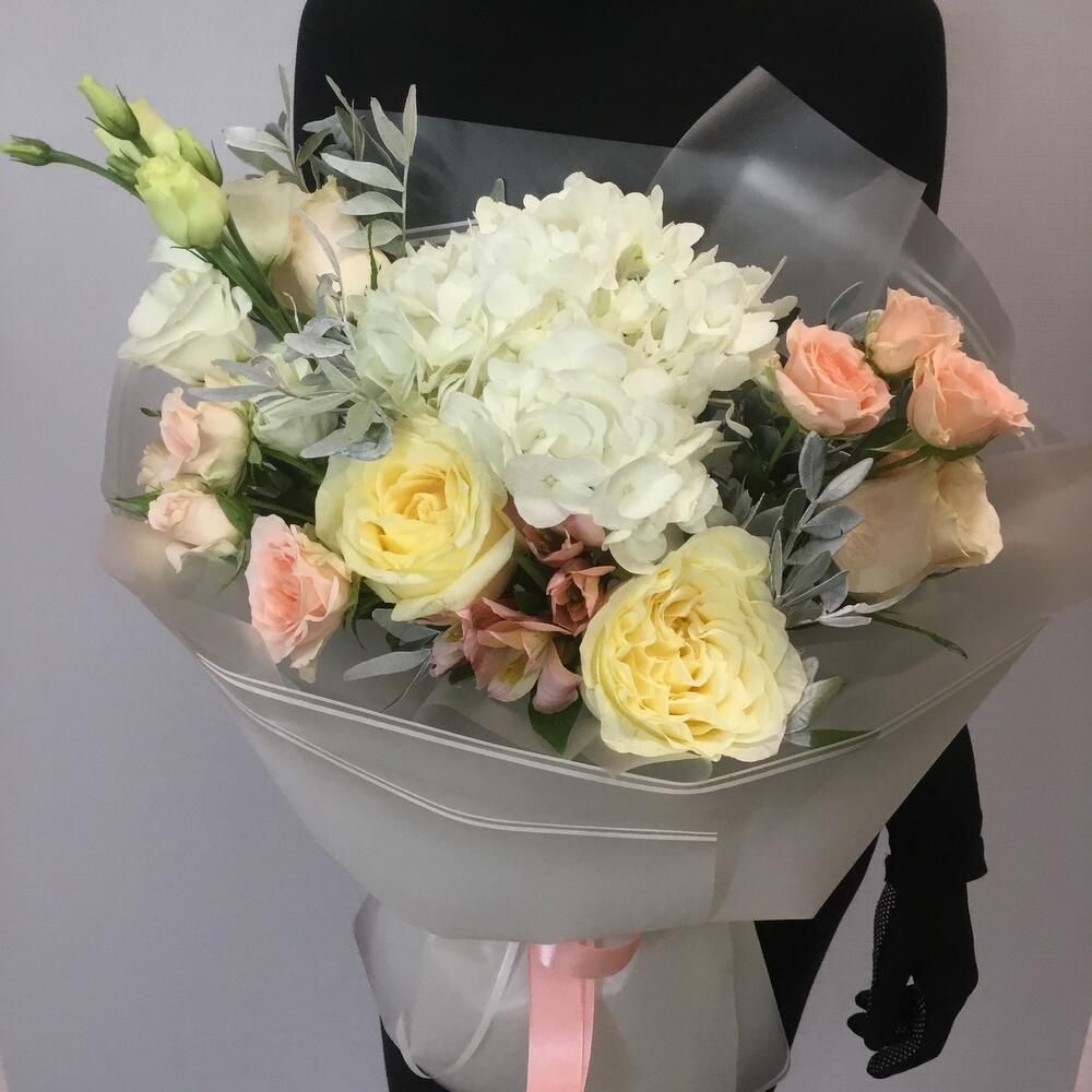 Букет с гортензией и розами «Янь»