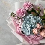 Букет с небесно-голубой гортензией