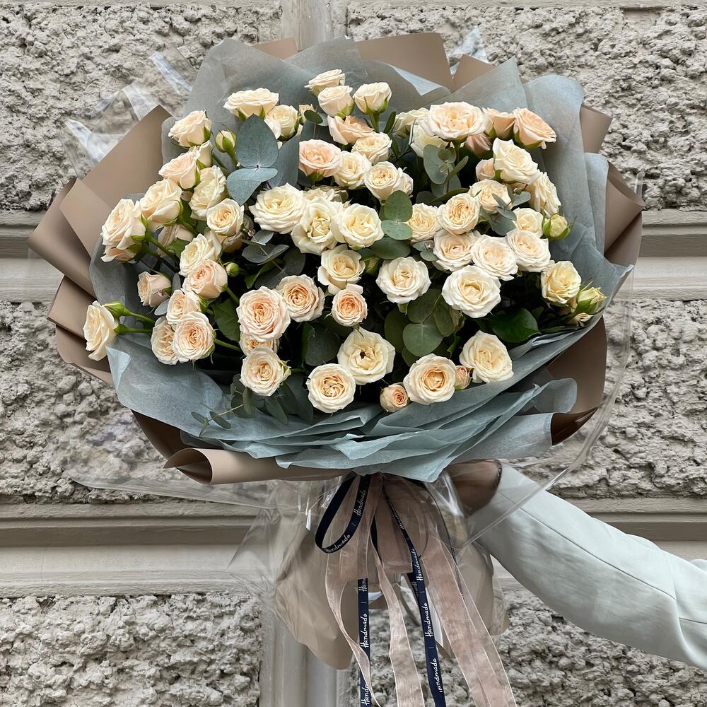 Букет с нежной кустовой розой «Кофейный Маршмэллоу XXL»