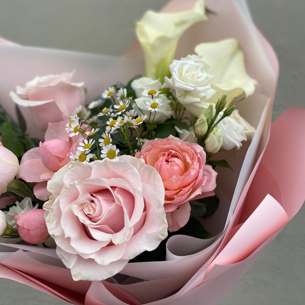 Категорий: Каллы, Кустовые розы, Лизиантусы, Пионовидные розы, Розы, Тюльпаны