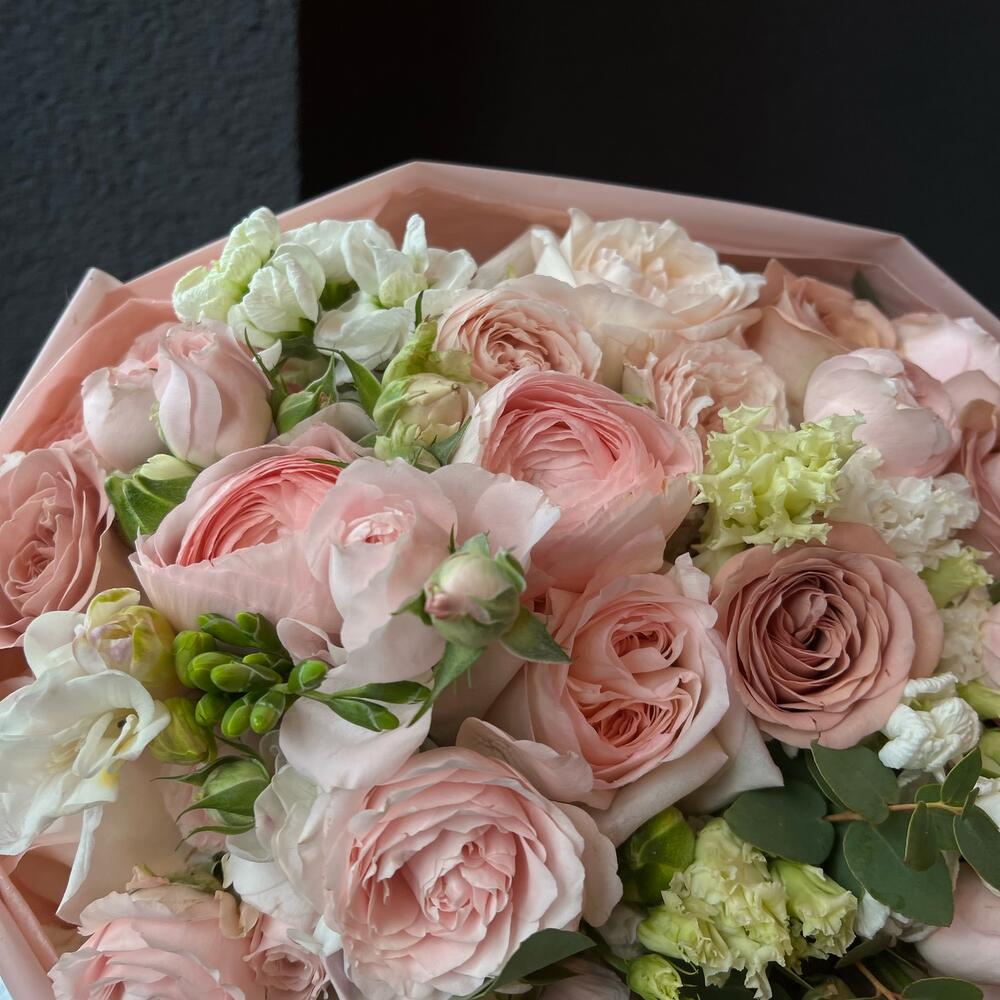 “В твоих глазах”: нежная шляпная коробка с французскими розами