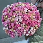 Кустовая роза – 101 шт. оформление – ленты – 1 шт.