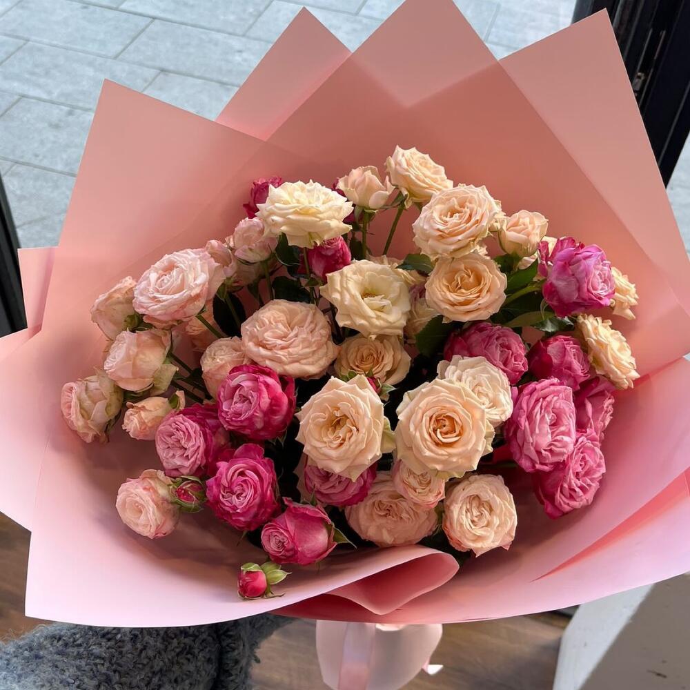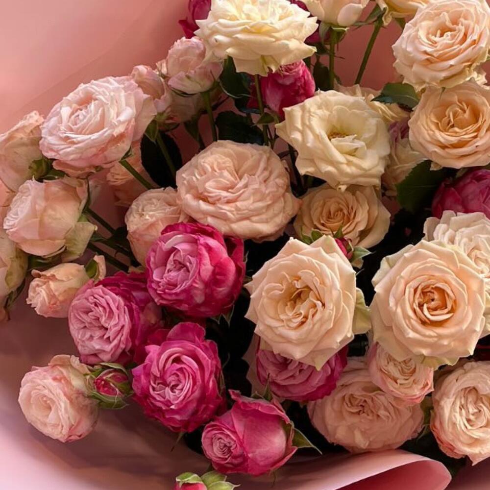 Пионовидная кустовая роза – 13 шт. Упаковка дизайнерская – 1 шт. Открыточка с вашими пожеланиями – 1 шт. инструкция по уходу за цветами – 1 шт.