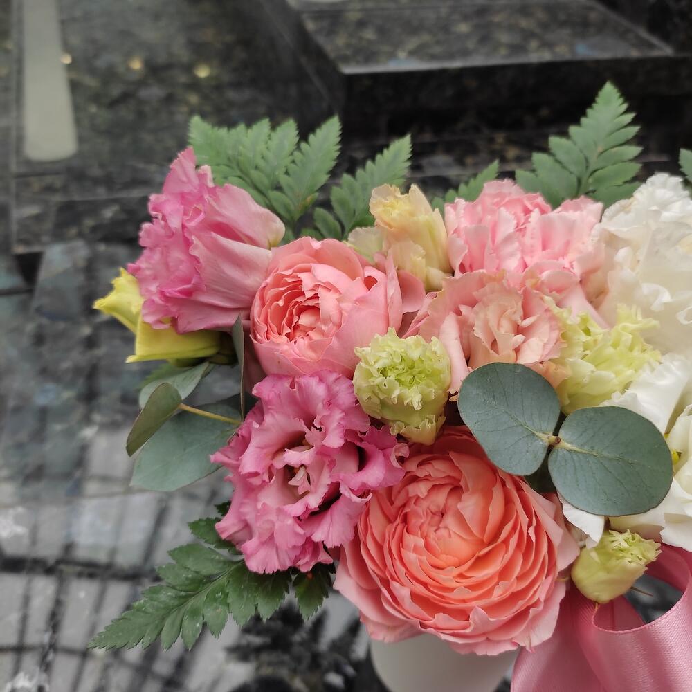 Цветочная композиция в шляпной коробке