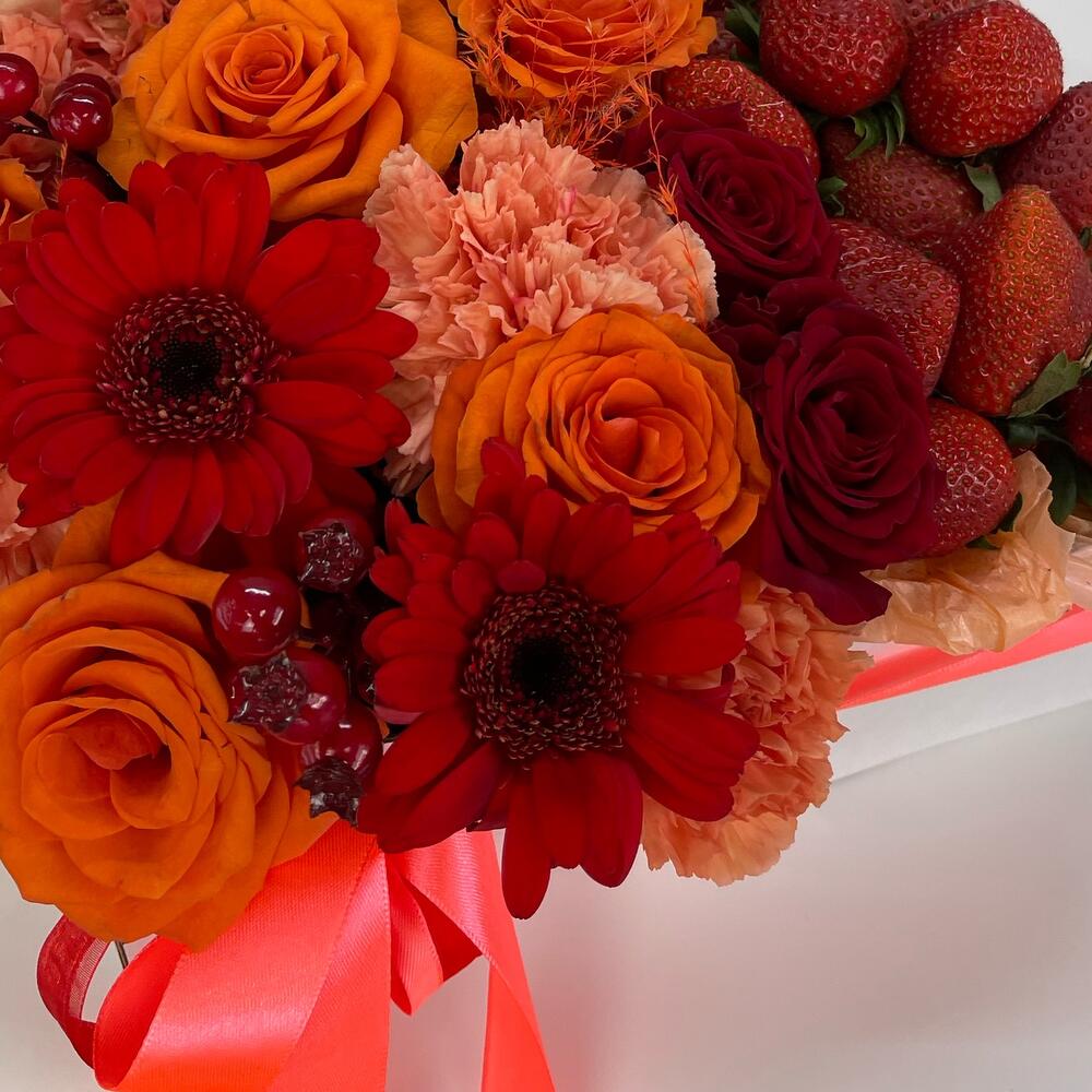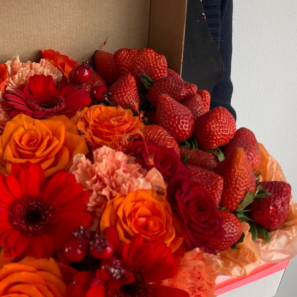 Цветы в коробке в клубникой