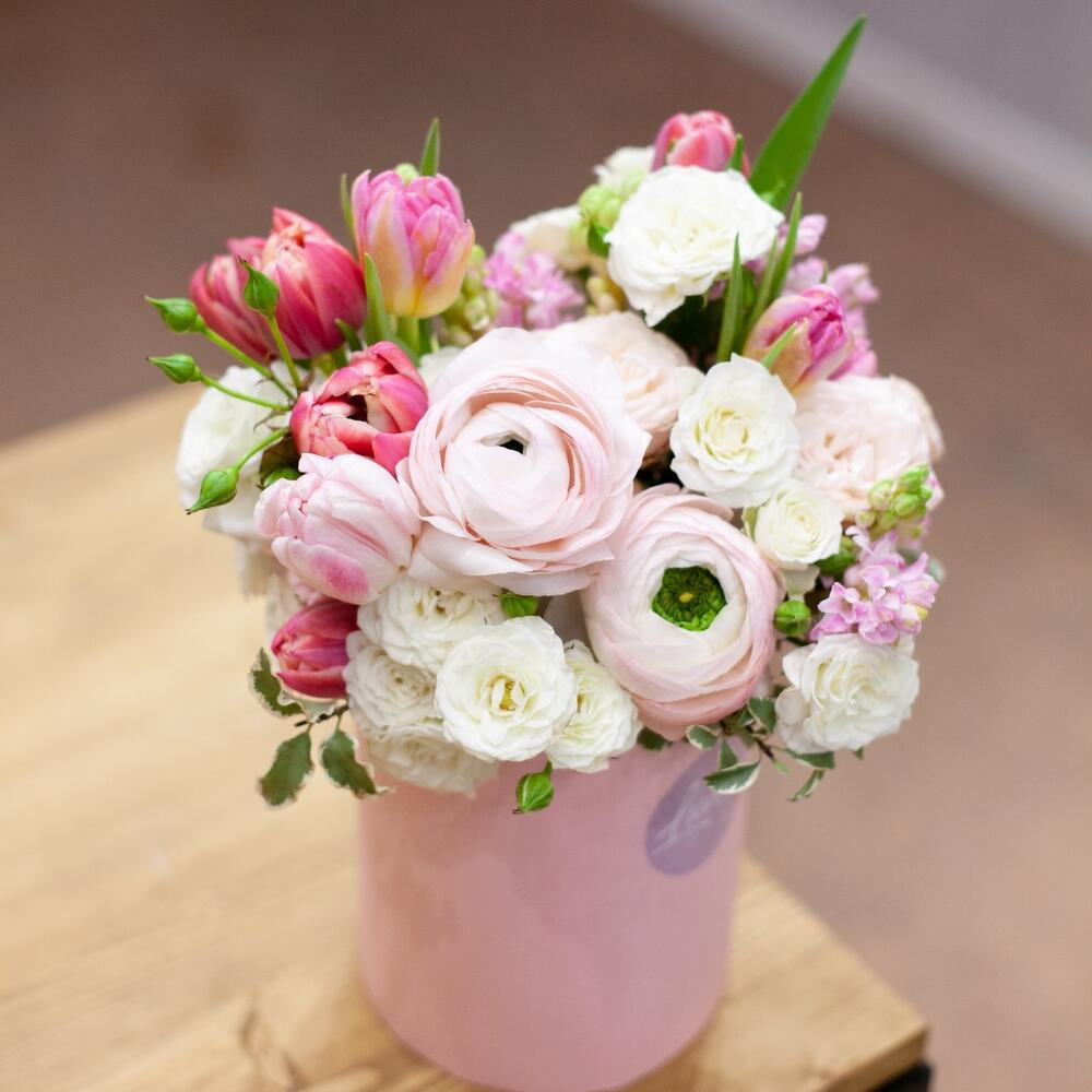 Цветы в шляпной коробке “Зефир”