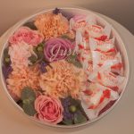 конфеты raffoello – 11 шт. Роза – 3 шт. Гвоздика – 4 шт. Зелень – 1 шт. Лимониум – 1 шт. Эвкалипт – 1 шт. Коробка – 1 шт. Оазис – 1 шт.