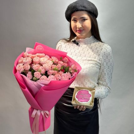 Комбо кустовые розы + бенто торт