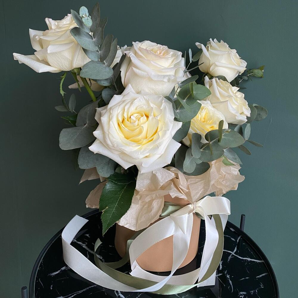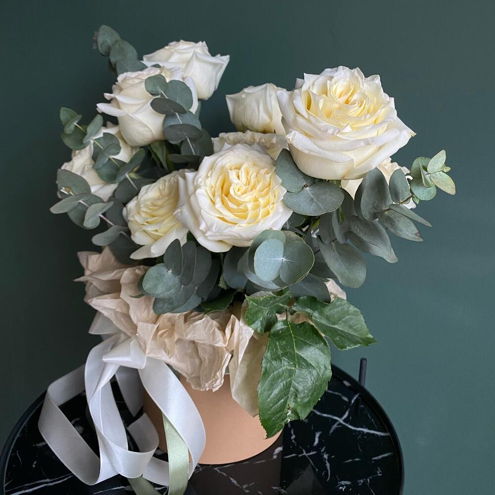 Композиция Белые пион розы в коробке М