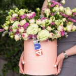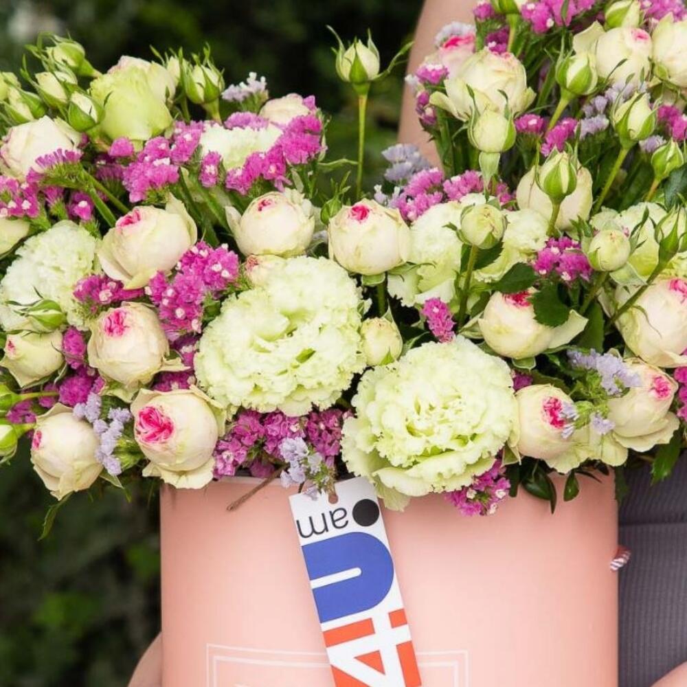 Лизиантус – 5 шт. Лимониум – 2 шт. Кустовая роза – 5 шт.