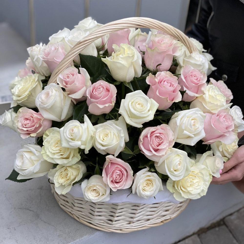 Метки: Белые розы, На свадьбу, от 5000 руб, Роза 50 см, Розовые розы, Розы в корзине, цветы в корзине