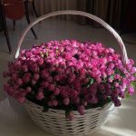 Корзина плетеная – 1 шт. Пионовидная кустовая роза – 151 шт.