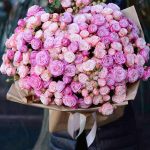 Пионовидная кустовая роза – 101 шт. Упаковка дизайнерская – 3 шт. Открыточка с вашими пожеланиями – 1 шт.