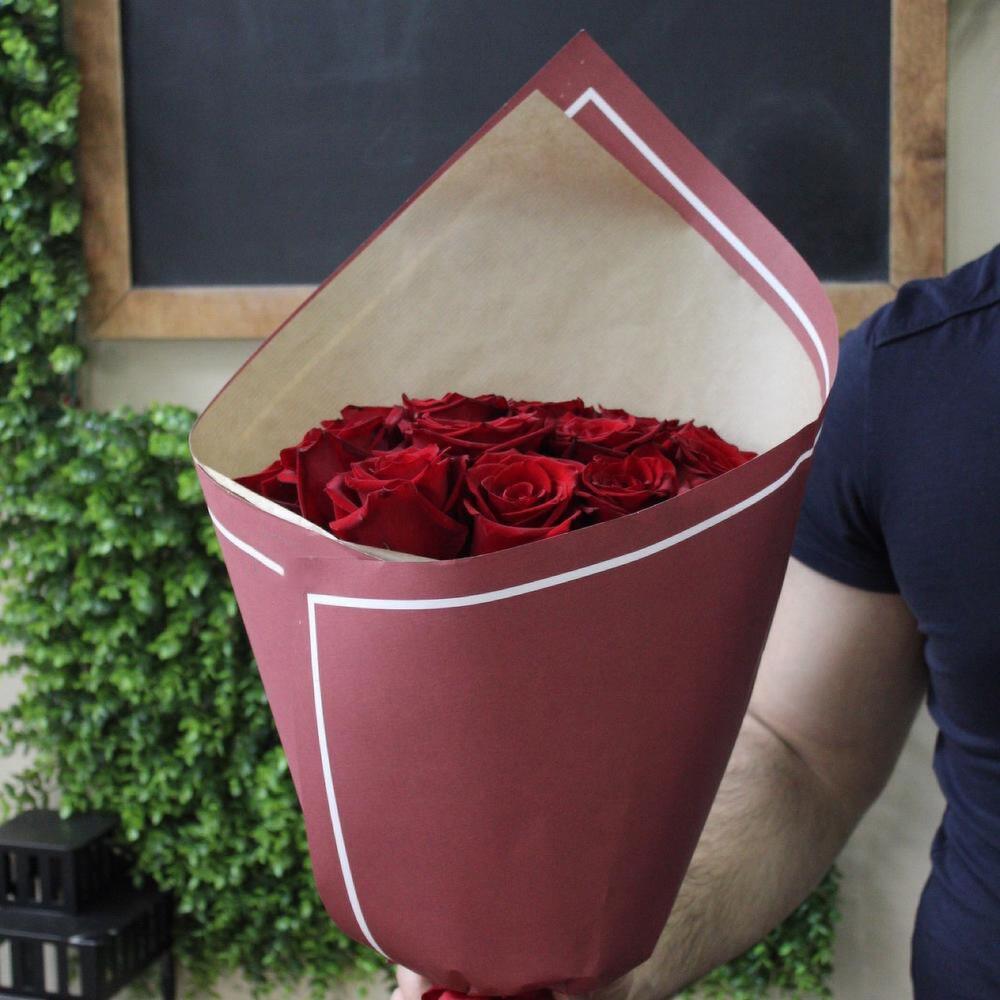 Роза Эквадор Премиум – 15 шт.Крафт дизайнерский – 1 шт.Лента атласная – 2 шт.Сердце – 1 шт.