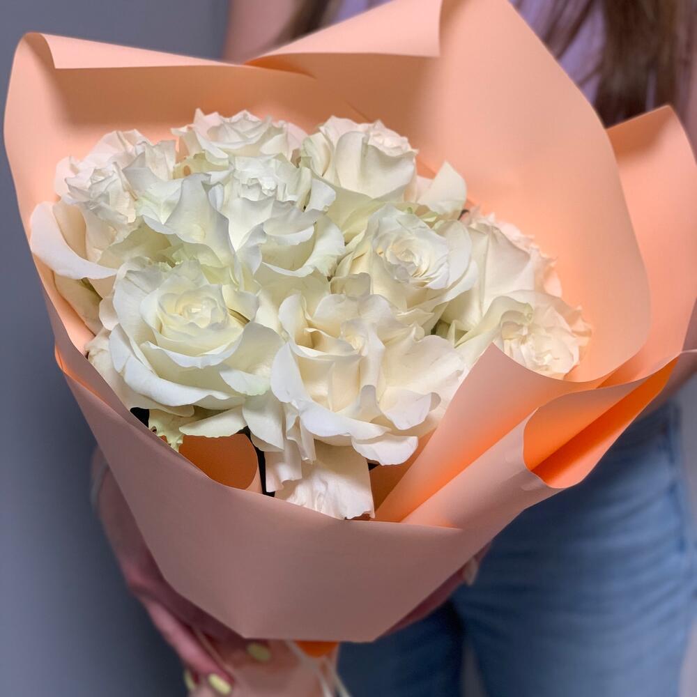 Роскошный букет из белоснежных роз Black edition