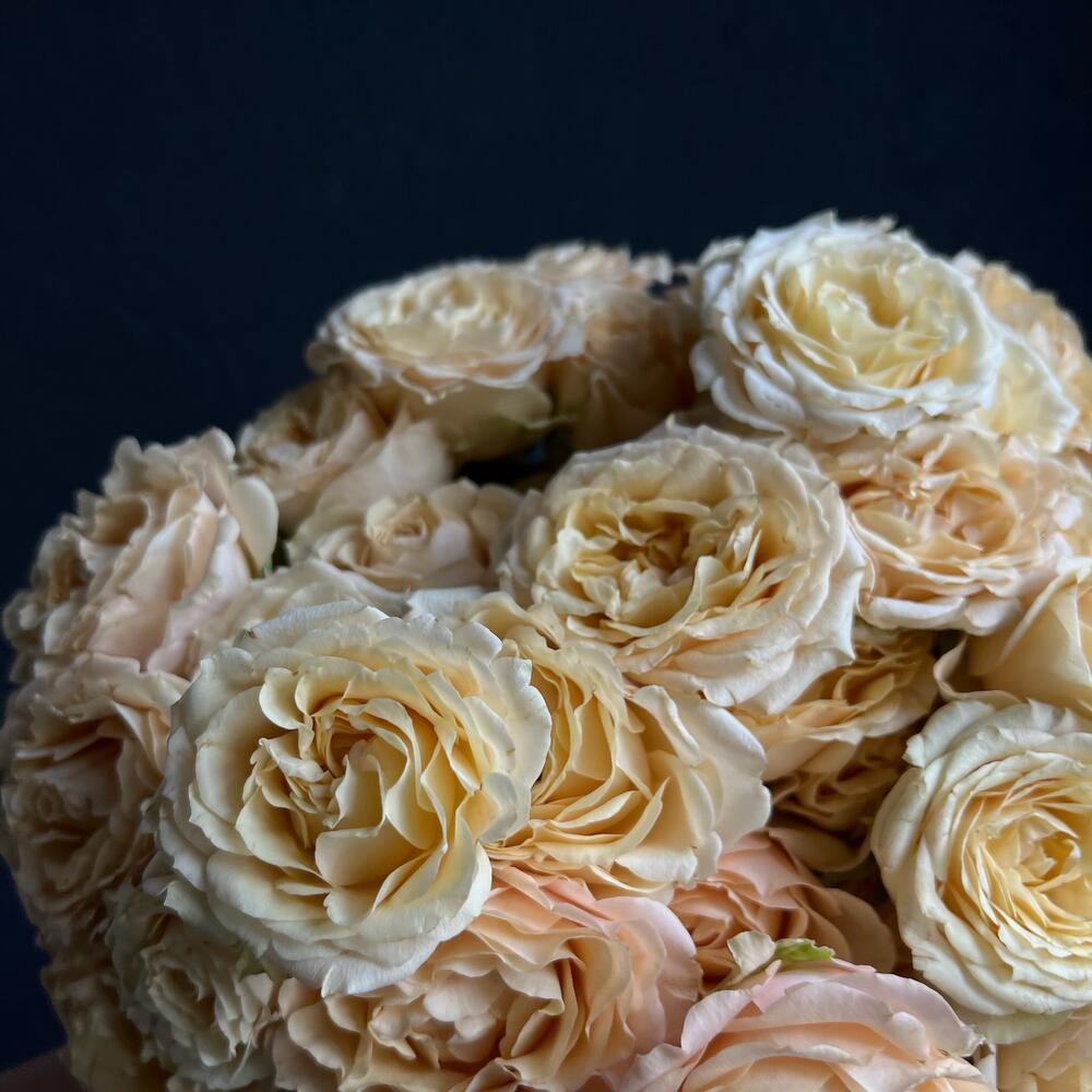 Роза кустовая пионовидная – 15 шт.Лента атласная – 1 шт.