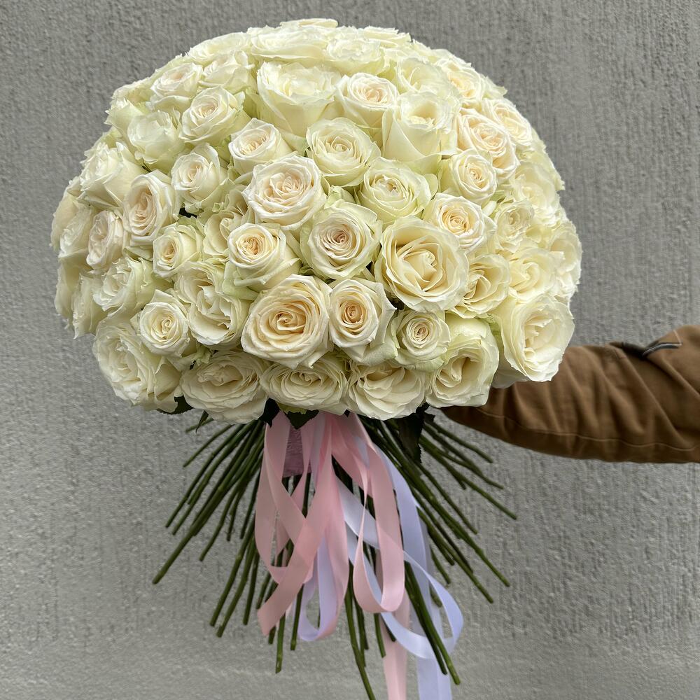 Метки: 101 роза, Белые розы, от 5000 руб, Роза 70 см