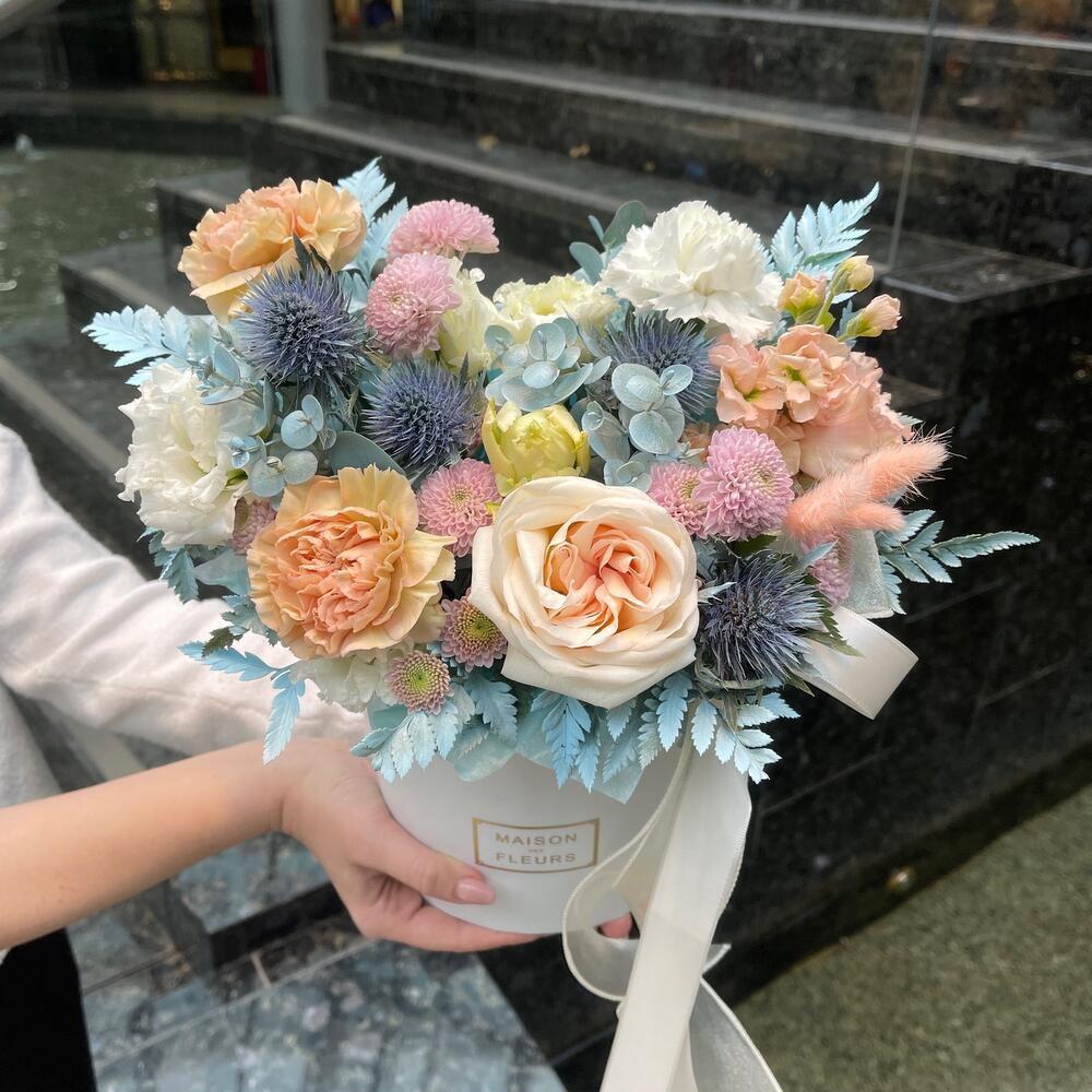 “В твоих глазах”: нежная шляпная коробка с французскими розами