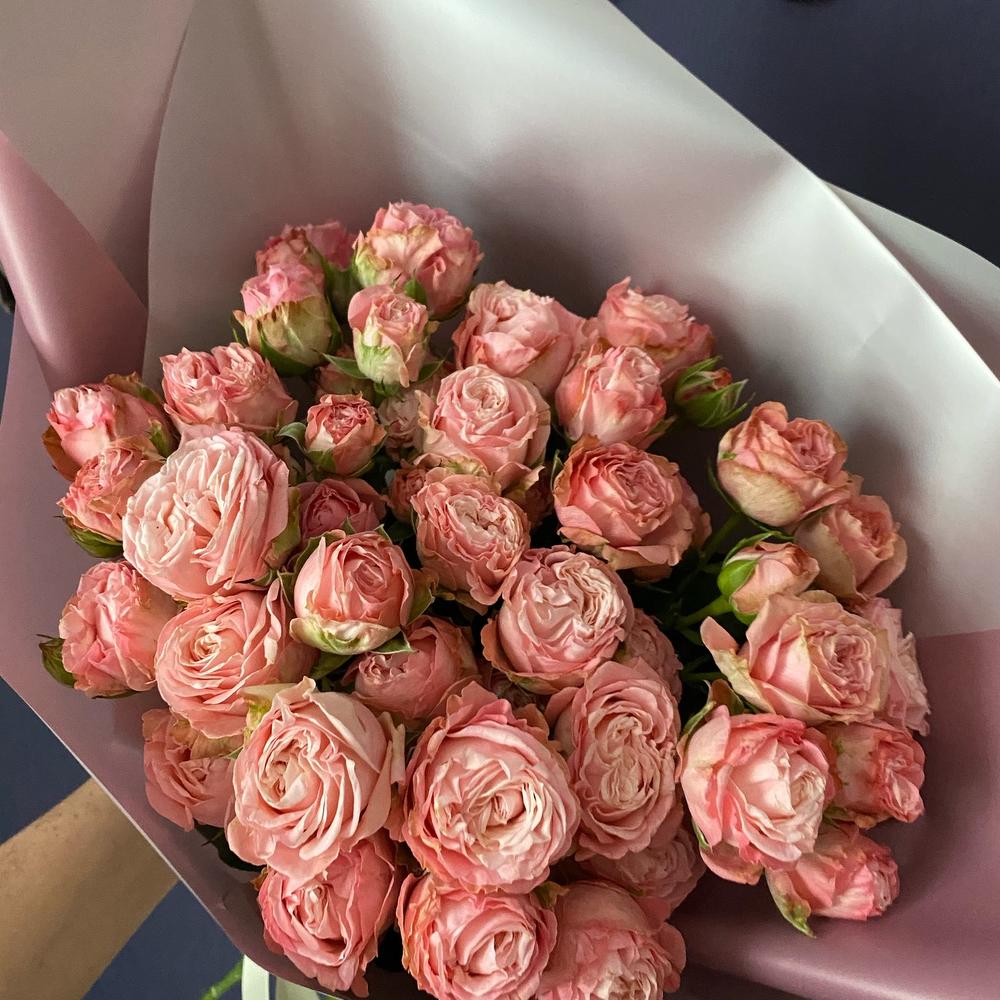 Лента атласная – 1 шт.Роза кустовая пионовидная – 9 шт.