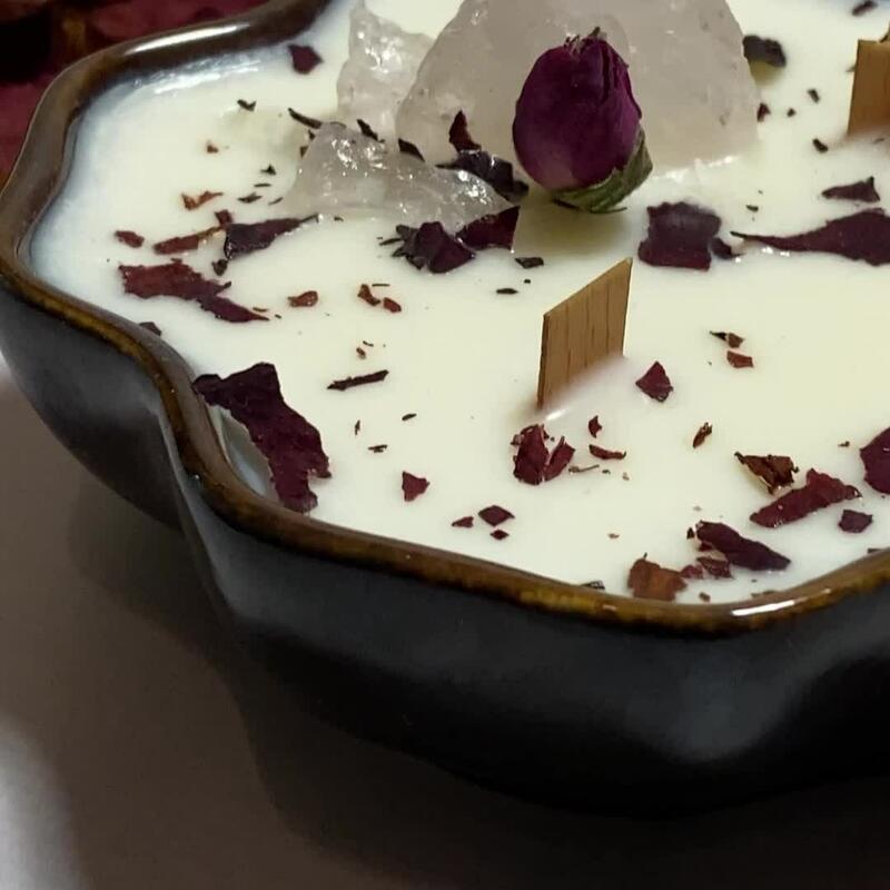 Лепестки роз – 20 гр.репродукция – 1 шт.бутоны китайской розы – 20 гр.розовый кварц – 1 шт.аромасвеча в керамике – 1 шт.природная морская соль – 350 гр.