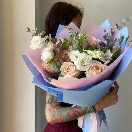 Категорий: Пионовидные розы, Розы, Хризантемы, Эвкалипт, Эрингиум