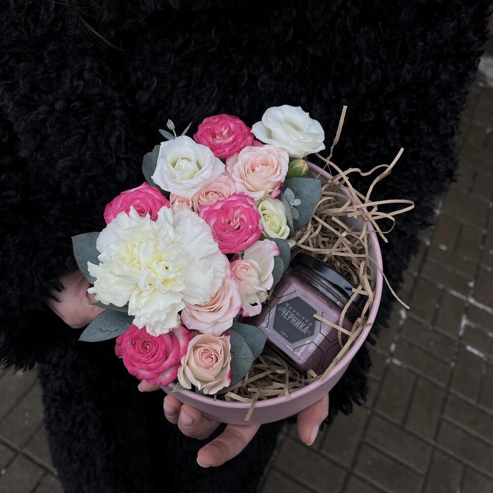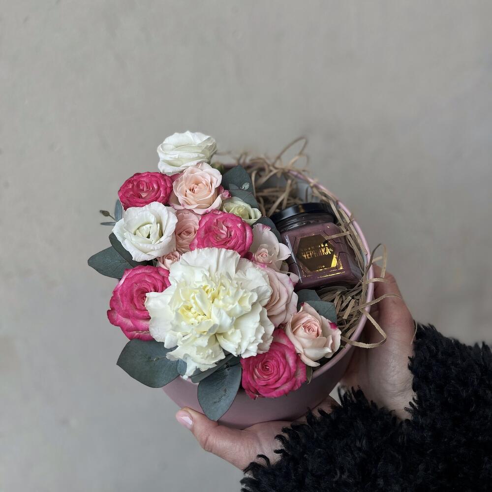 Розовая коробка с цветами и мёдом / 1361 id