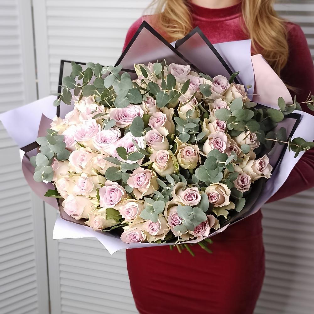 Невероятные нежные розы в сочетании с ароматным эвкалиптом