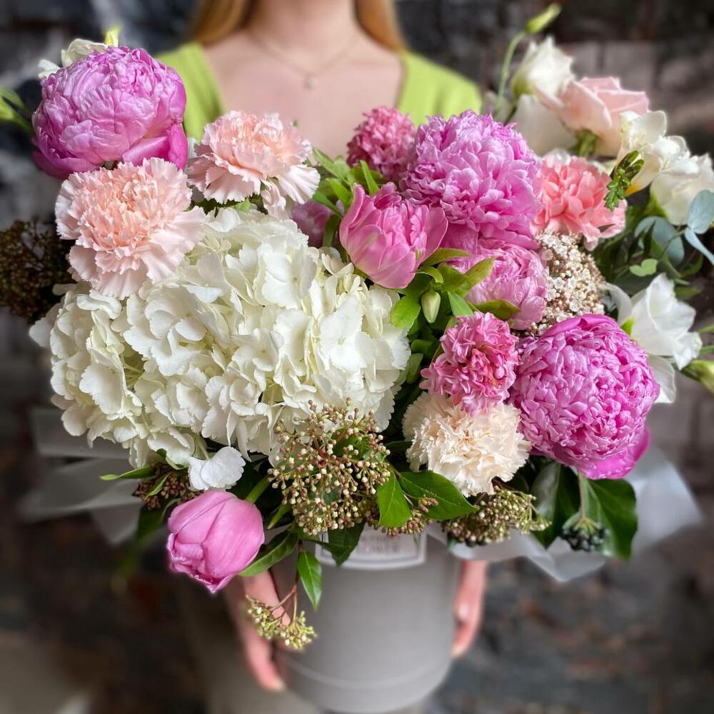 “Эвкалиптическая роскошь” гортензия и пионовидная кустовая роза
