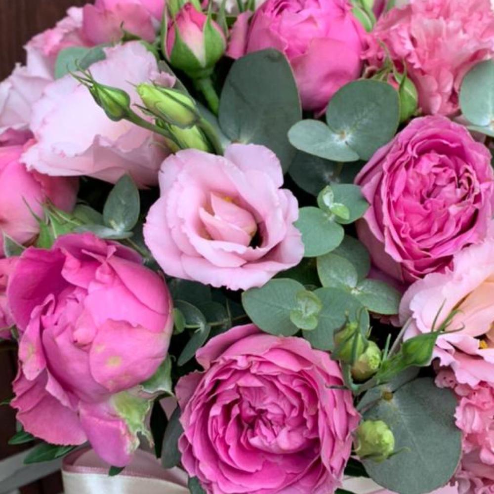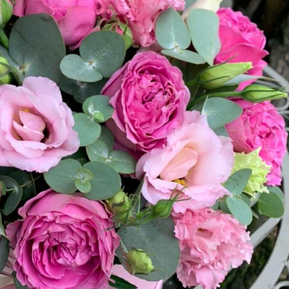 Шикарный букет с розой, лизиантусом и эвкалиптом