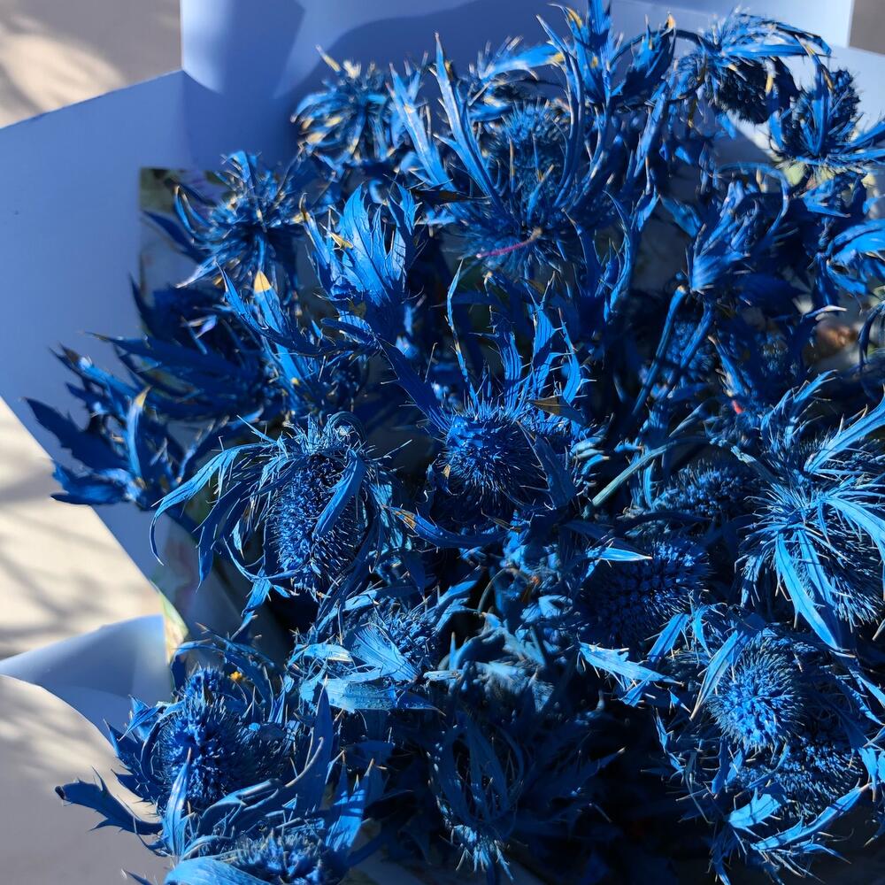 Упаковка – 2 шт.Лента атласная – 1 шт.эрингиум сухоцвет крашеный – 9 шт.