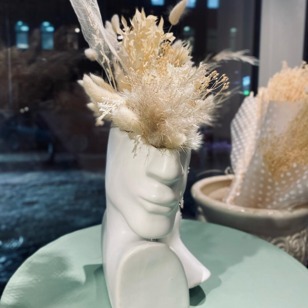 голова ваза – 1 шт.пампасная трава – 1 шт.пальма сухоцвет – 1 шт.Амарант – 1 шт.сухоцветы микс – 10 шт.Сетария – 3 шт.