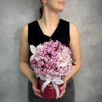“Сиреневый туман” – композиция из гипсофилы в шляпной коробке