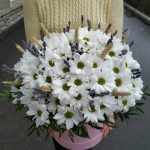 ромашки – 25 шт.Лаванда – 25 шт.Пшеница – 11 шт.Шляпная коробка – 1 шт.Флористическая губка – 1 шт.